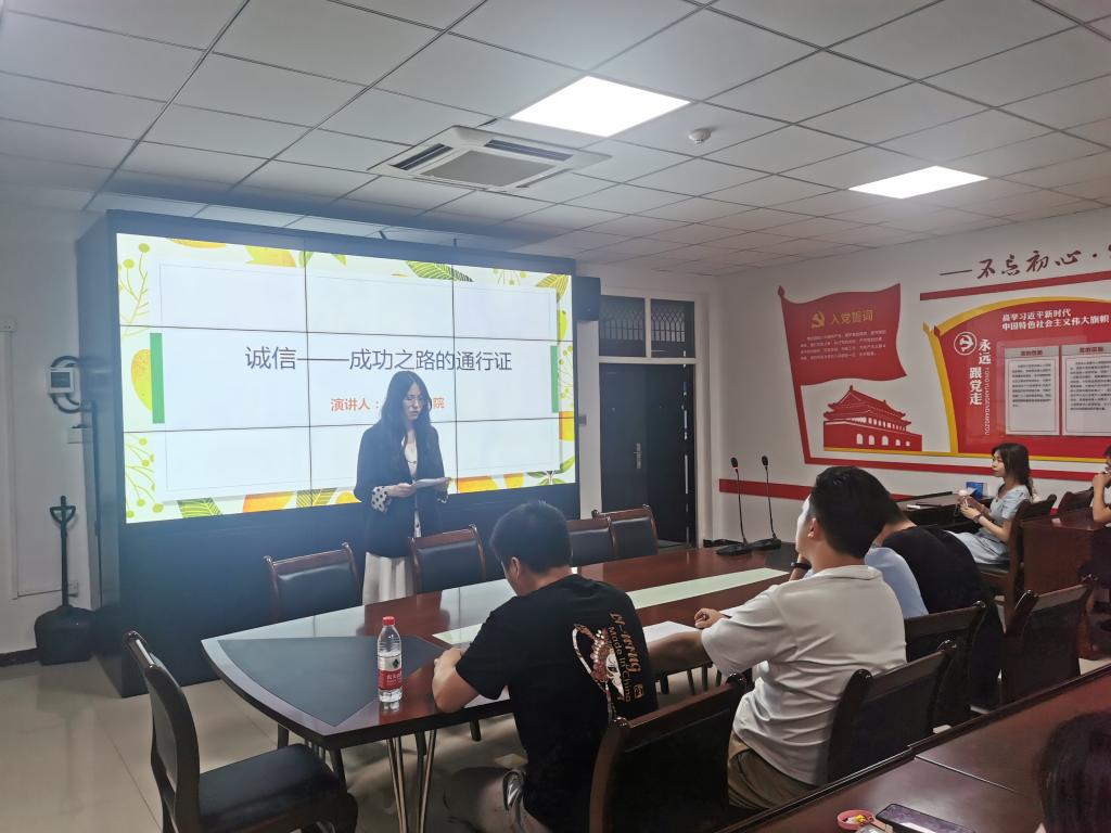 本次活动分为诚信主题演讲、励志成才报告、观看反诈骗校园行安全教育短片三个环节。首先,各位研究生参赛选手参照“砥砺诚信品格 扬帆诚信人生”主题,结合自身经历,旁征博引,引导大家牢固树立诚信意识,恪守学术道德,坚守学术诚信,积极践行诚实守信的道德观念。