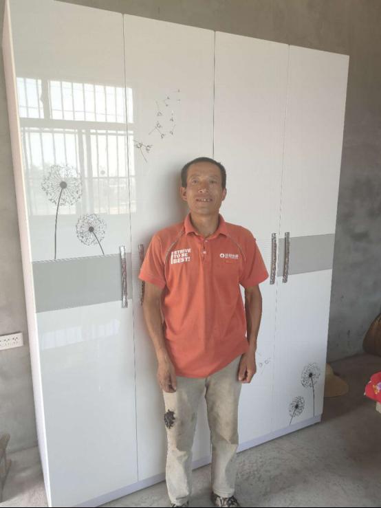 为殷小军家配置了价值5000元的四门柜一个,沙发一部,茶几一台,实木餐桌一套。