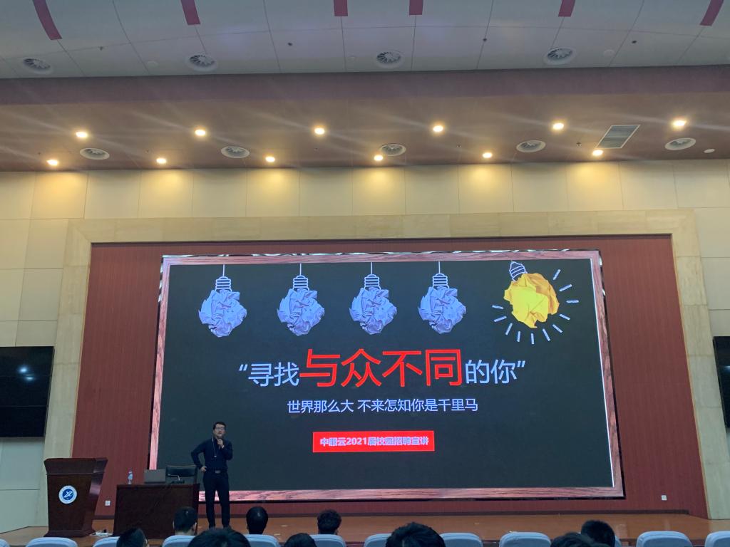 报告结束后,西安中服软件有限公司运营总监吕蒙、普联软件股份有限公司西安分公司总经理刘宗庆从公司概况、棋牌游戏平台官方入口、企业员工培养模式、企业目前的发展状况及发展前景与同学们作了分享,并宣讲了2020年企业校招。