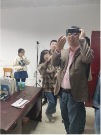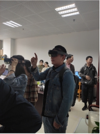 现状、数字媒体技术本科专业情况及师资情况、数字媒体技术本科培养计划、实践基地与实验室、就业情况等进行了详细介绍。理工大相关专业老师与我系老师就本专业的课程设置、专业发展与学生就业等进行了热烈讨论。之后,在陈主任的指引下,参观了专业实验室并由学生对基于AR、VR等设备的视觉系统功能进行了演示。