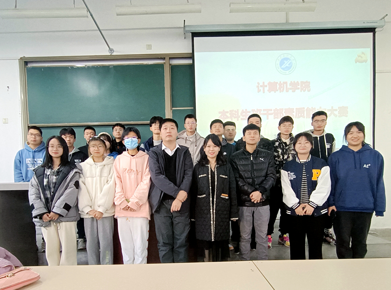 学生工作办公室主任乔晓、2019级辅导员王天航、2021级辅导员姜楠和李路参与评审,2021级18名班级学生干部参加比赛,100余名学生观摩了本次比赛。