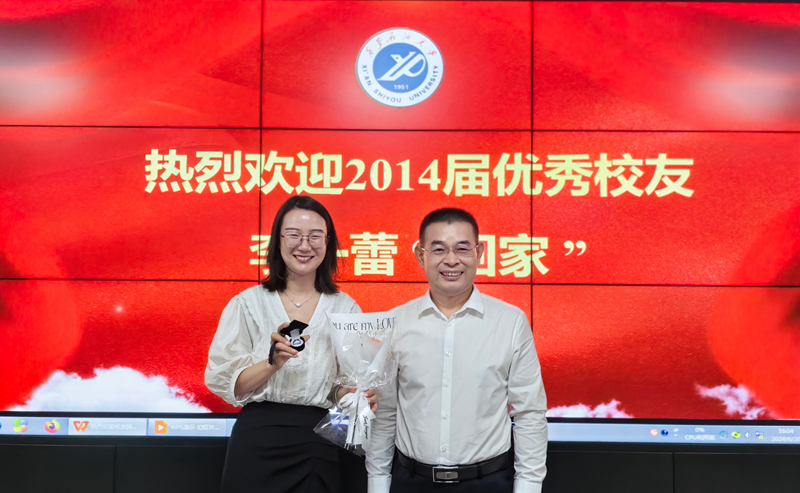庞秉谦欢迎并感谢李一蕾校友回母校交流,代表棋牌游戏平台