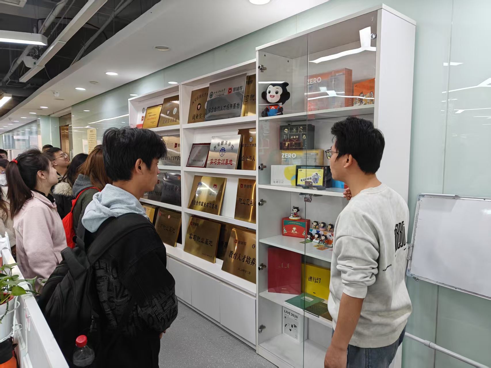 最后,陈紫怡、张裕旺带领师生参观了猿辅导西安分公司工作区,让同学们沉浸式体验教育科技行业的工作状态,走进企业一线,提前熟悉就业岗位环境。