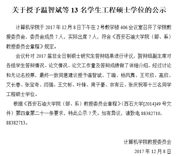 关于授予温智斌等13名学生工程硕士学位的公示