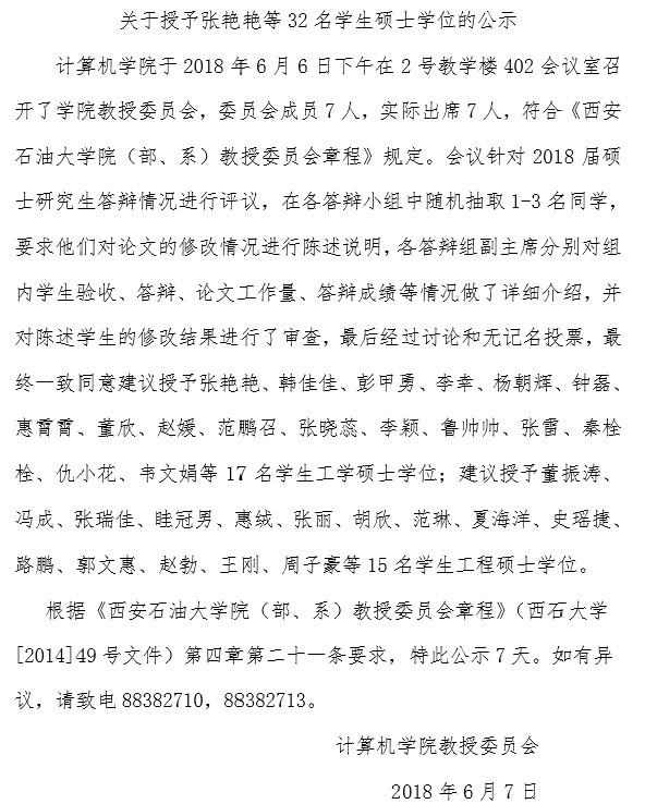 关于授予2015级研究生硕士学位的公示
