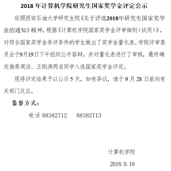 2018年棋牌游戏平台 研究生国家奖学金评定公示
