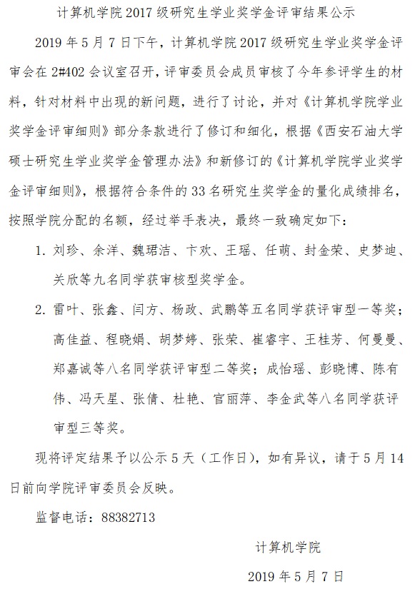 棋牌游戏平台 2017级研究生学业奖学金评审结果公示