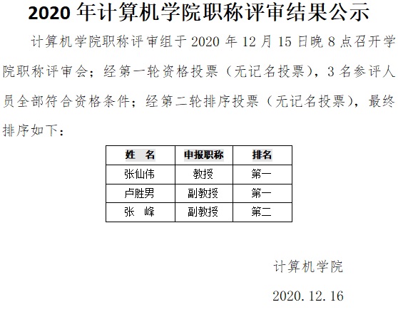 2020年棋牌游戏平台 职称评审结果公示