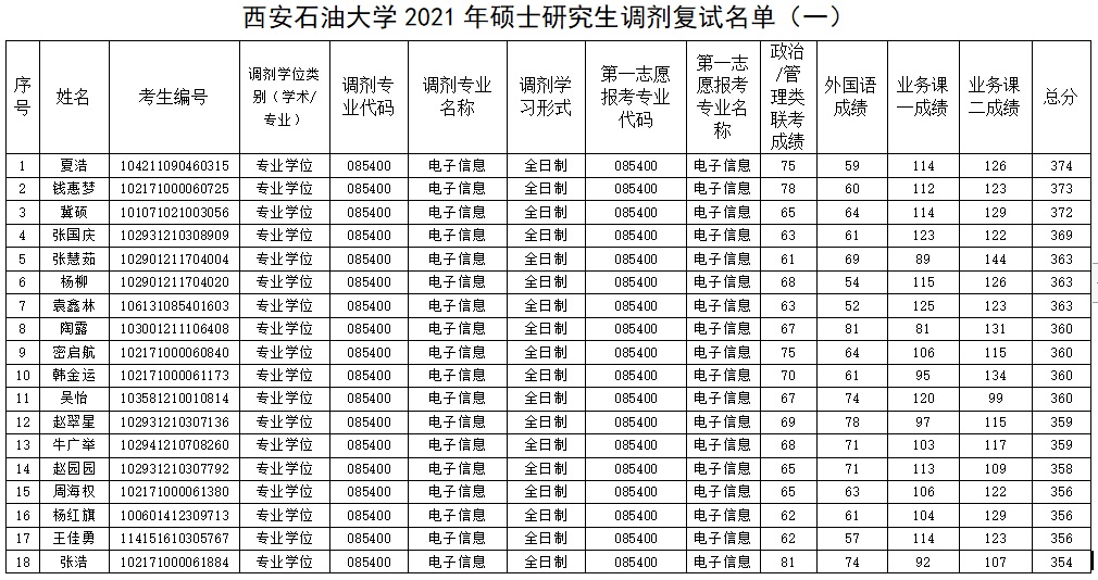 2021年硕士研究生复试名单(专业学位全日制1)公示