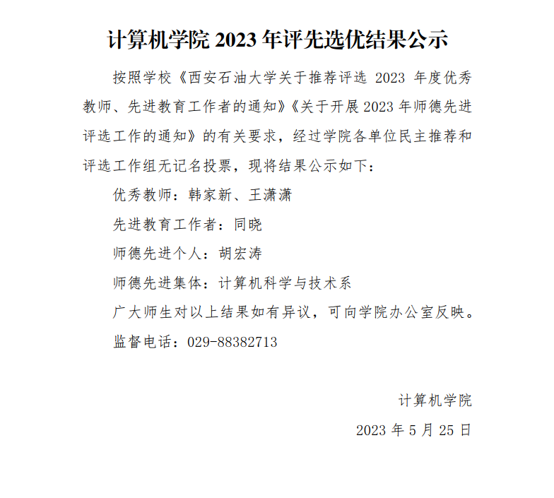 棋牌游戏平台 2023年评先选优结果公示