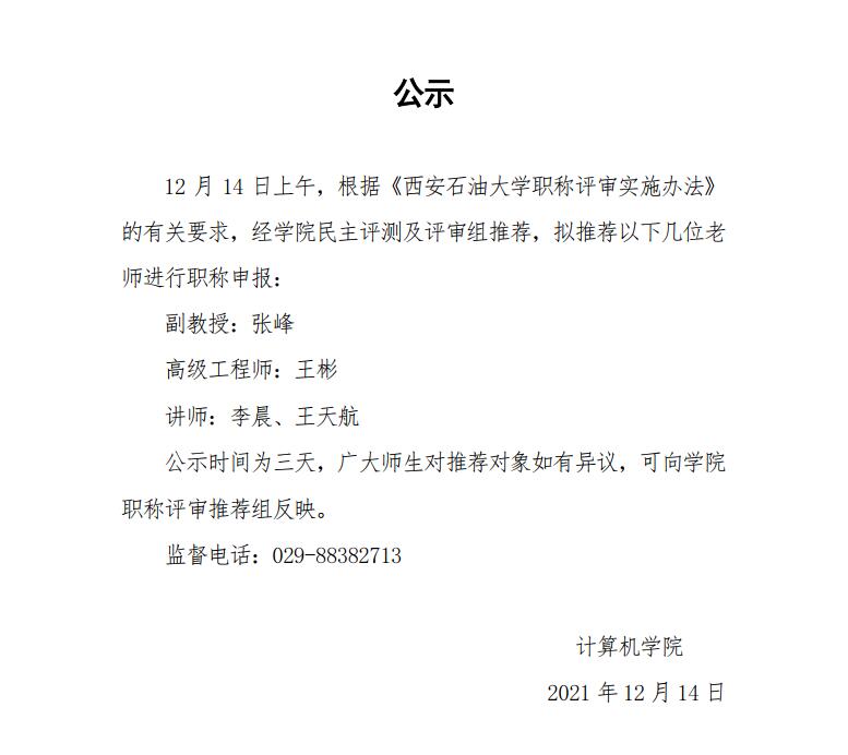 棋牌游戏平台 2021年职称评审推荐结果公示